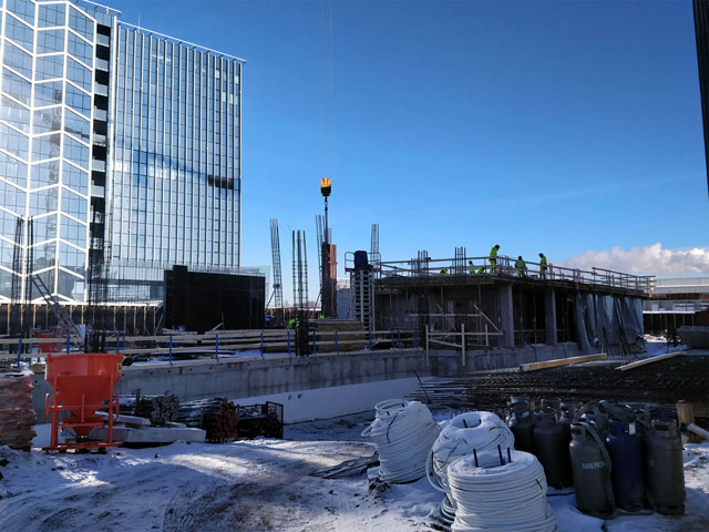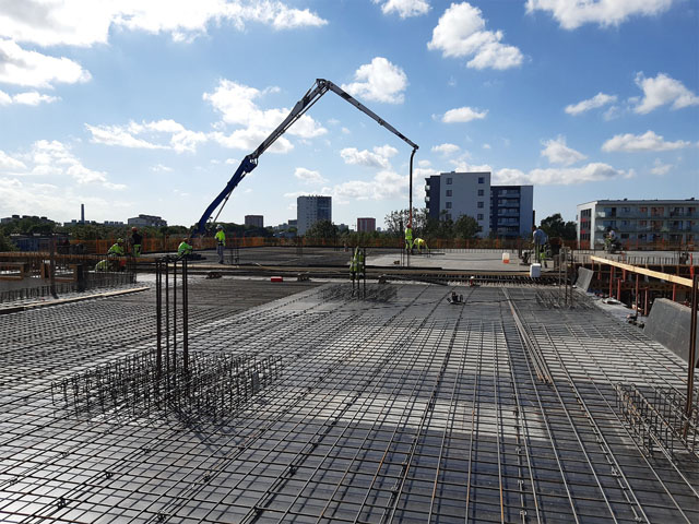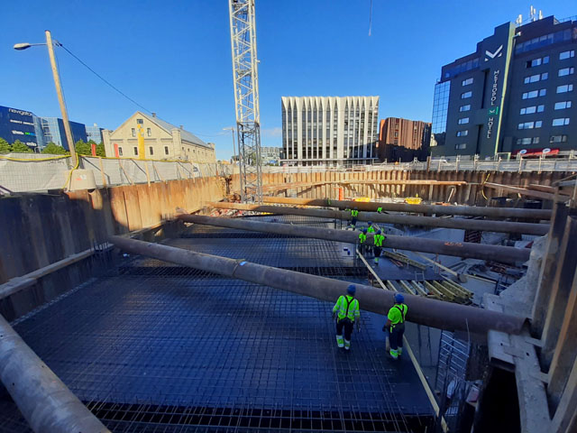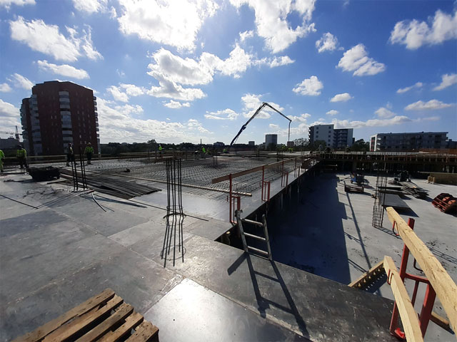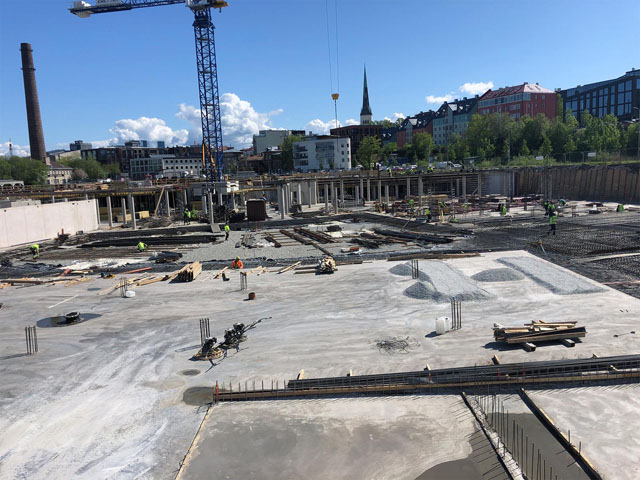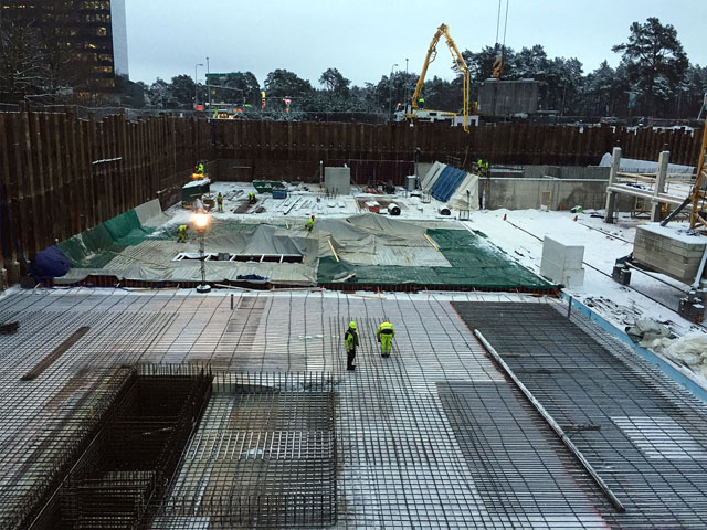 Office building with one underground floor and four floors above grounds. Reinforcement and concreting works.