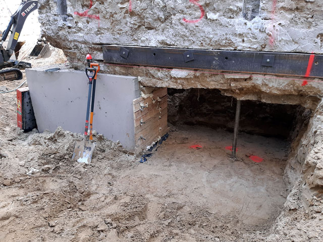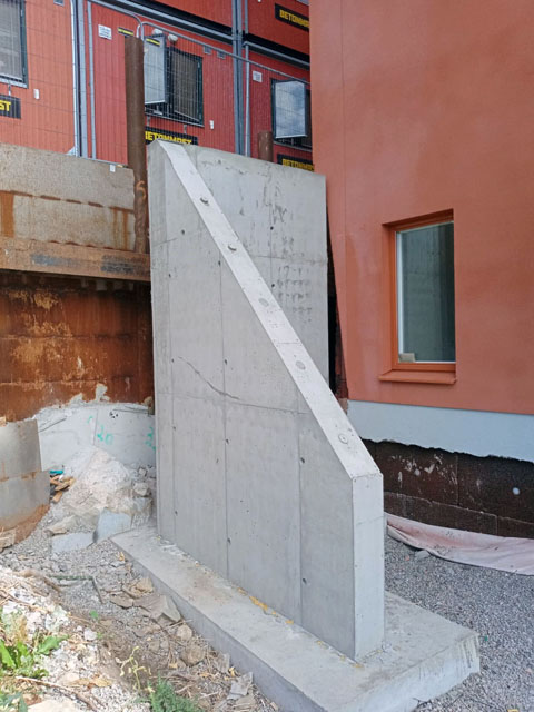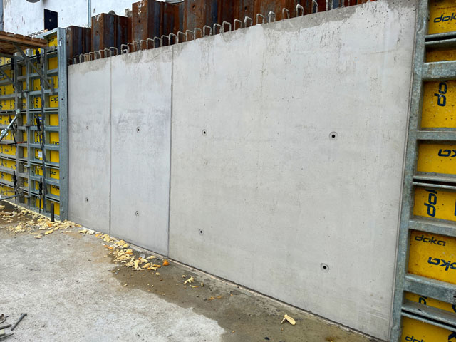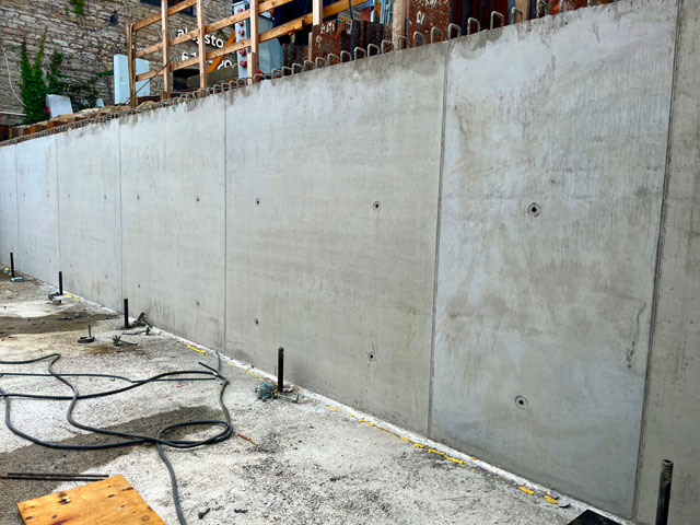Construction of apartment building retaining walls