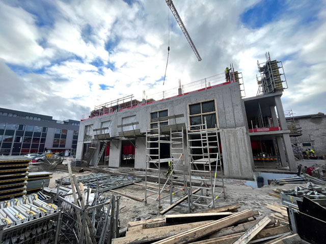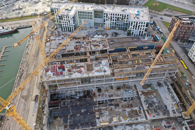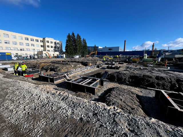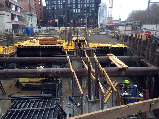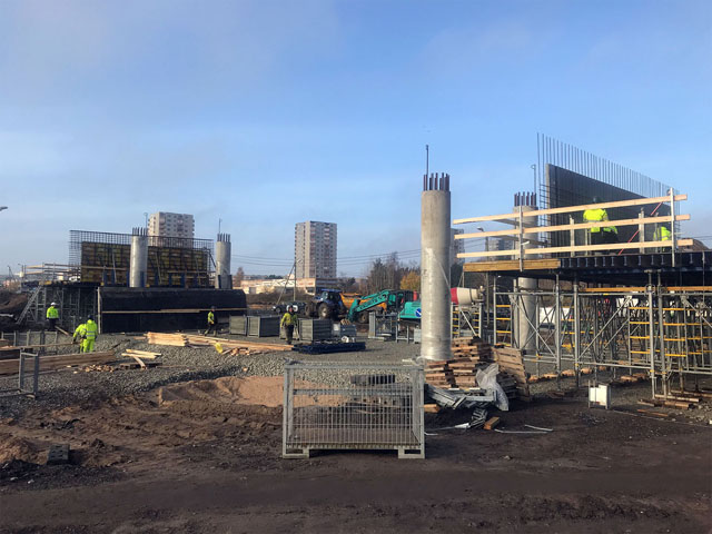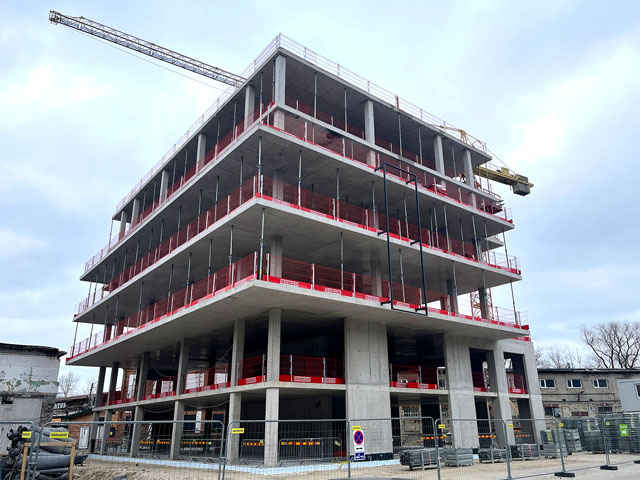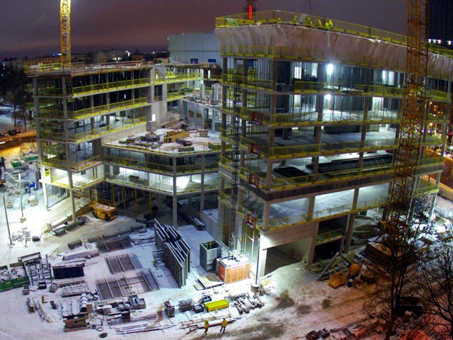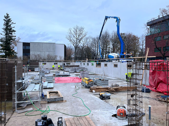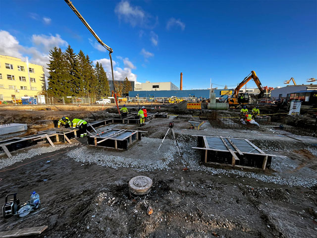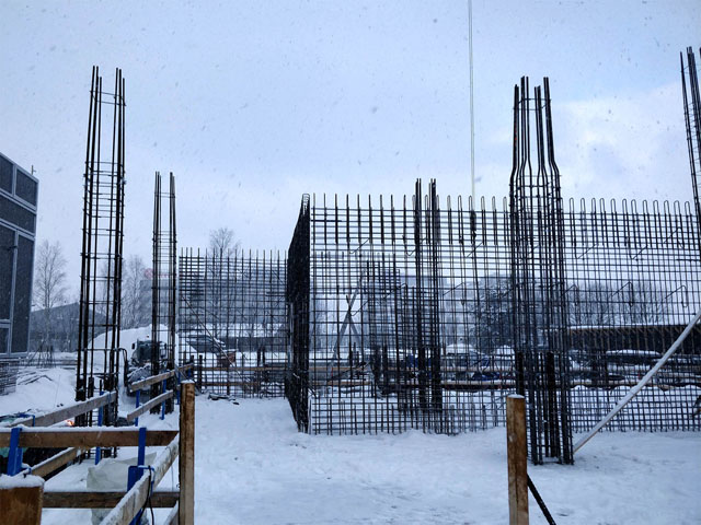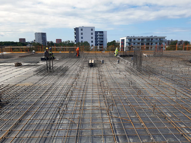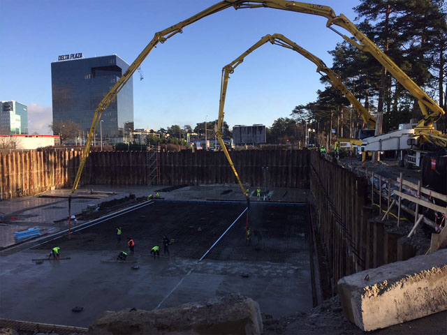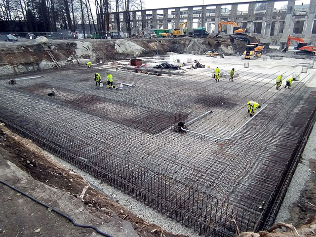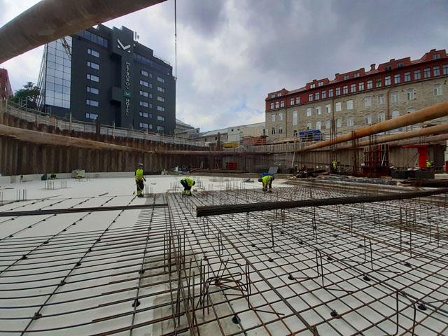 Office building with one underground floor and four floors above grounds. Reinforcement and concreting works.