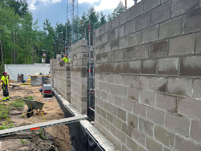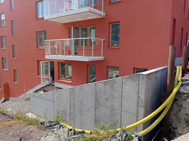 Construction of apartment building retaining walls