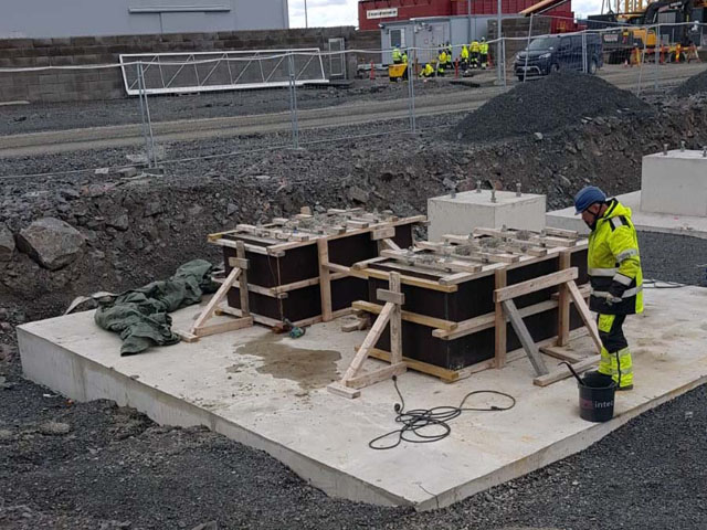 Concrete works and installation of concrete elements.