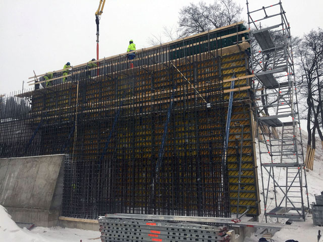 Reinforcement and construction works of concrete walls.