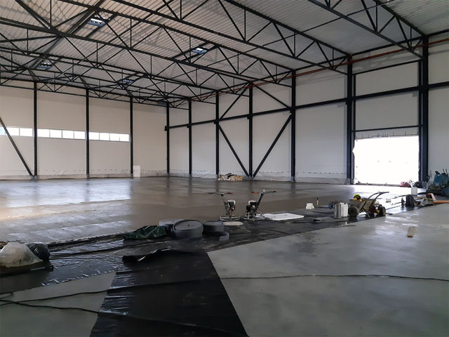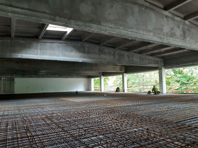 Concreting works of office building floor zero and bomb shelter.